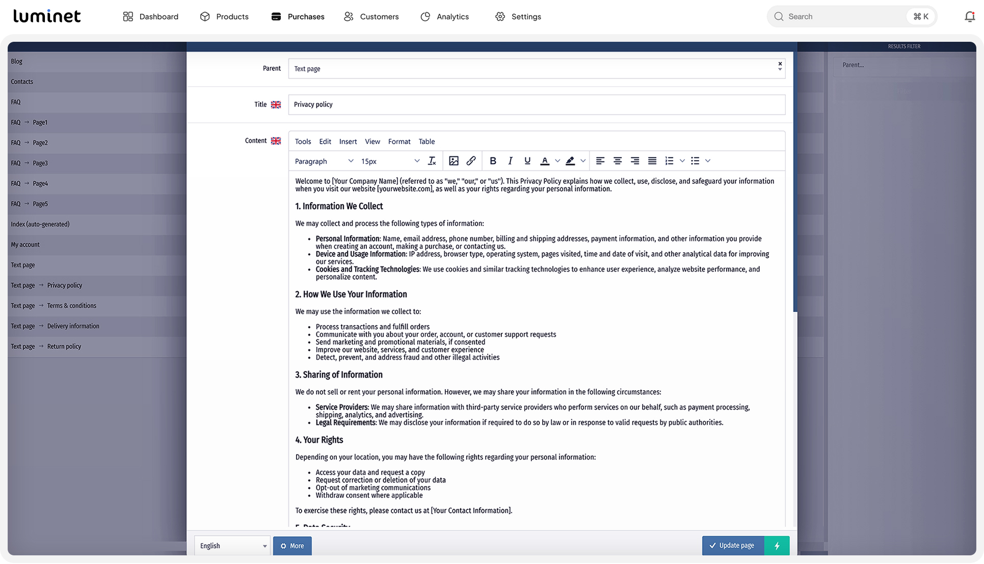 Luminet sistema, būdama lengva ir optimizuota, efektyviai išnaudos visus dedikuoto serverio privalumus, suteikdama Jūsų el. parduotuvei neprilygstamą veikimo kokybę.